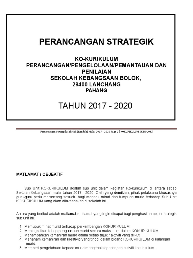 Pelan Strategik Kokurikulum Pdf