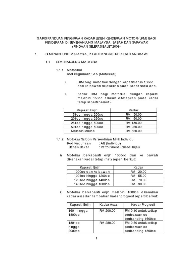 Kadar Cukai Jalan Kenderaan Pdf