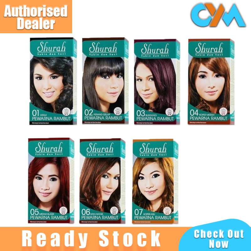 It c onsists of 7 charming color variants. Serlahkan keyakinan anda dengan rambut cantik berseri bersama Pewarna Rambut. Pewarna rambut Shurah juga boleh didapati dalam pek kecil dan kit.