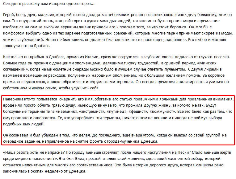 Share your videos with friends family and the world. Il 28enne era un acceso. Elia Putzolu 28enne di origine sarde che viveva da tempo a Tangrog nei dintorni della città russa di Rostov è stato ucciso nei corsi dei combattimenti nel Donetsk dove era.